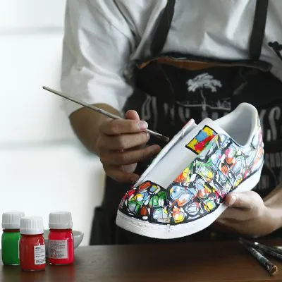 スニーカーに色を塗ったり、絵を描いて好みのデザインに仕上げたり、キズや色あせ部分を補色したりすることができます。